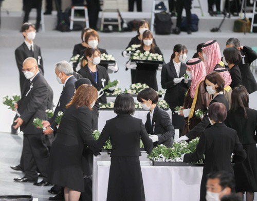 نيابةً عن خادم الحرمين الشريفين الملك سلمان بن عبد العزيز آل سعود، -حفظه الله-، شارك صاحب السمو الأمير فيصل بن فرحان بن عبد الله وزير الخارجية، في مراسم العزاء الرسمية في وفاة رئيس وزراء اليابان السابق السيد شينزو آبي، بالعاصمة اليابانية طوكيو. ونقل سموه خلال مراسم العزاء، تعازي خادم الحرمين الشريفين الملك سلمان بن عبد العزيز آل سعود، وصاحب السمو الملكي الأمير محمد بن سلمان بن عبد العزيز آل سعود، ولي العهد نائب رئيس مجلس الوزراء وزير الدفع -حفظهما الله- لدولة السيد فوميو كيشيدا رئيس وزراء اليابان، في وفاة رئيس وزراء اليابان السابق السيد شينزو آبي.