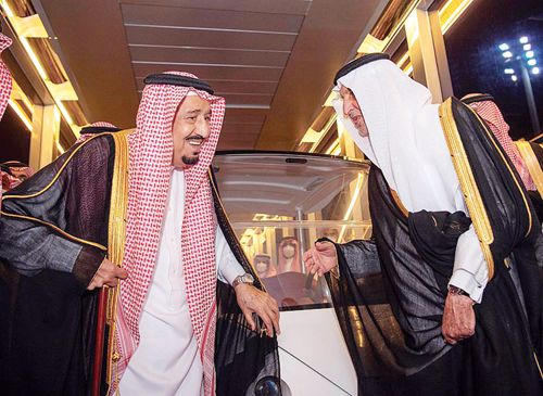 ولدى وصول خادم الحرمين الشريفين، كان في استقباله -أيده الله- بمطار الملك خالد الدولي، صاحب السمو الملكي الأمير فيصل بن بندر بن عبدالعزيز أمير منطقة الرياض، وصاحب السمو الملكي الأمير محمد بن عبدالرحمن بن عبدالعزيز نائب أمير منطقة الرياض.