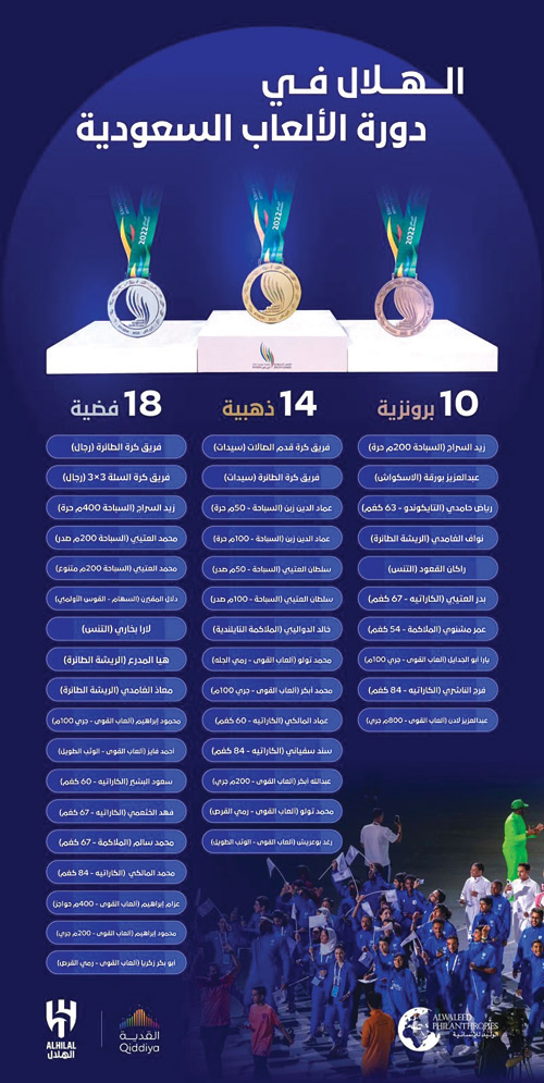 بالأمس القريب أنهى الزعيم مشاركته في النسخة الأولى من دورة الألعاب السعودية معتلياً القمة بلا منازع بـ42 ميدالية منوعة «14 ذهبية و18 فضية و10 برونزية» وهو رقم كبير جداً في عالم المنافسات الرياضية، بلغت جوائزها النقديه 20,400,000