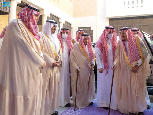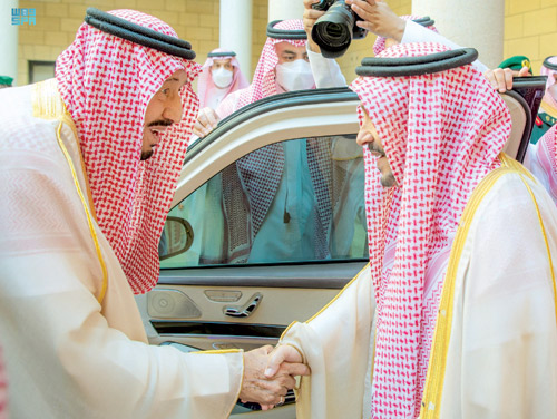 ولدى وصول خادم الحرمين الشريفين كان في استقباله - أيَّده الله -، صاحب السمو الملكي الأمير فيصل بن بندر بن عبد العزيز أمير منطقة الرياض، وصاحب السمو الملكي الأمير محمد بن عبد الرحمن بن عبد العزيز نائب أمير منطقة الرياض، ومعالي وكيل إمارة منطقة الرياض الدكتور فيصل السديري، وعدد من المسؤولين.