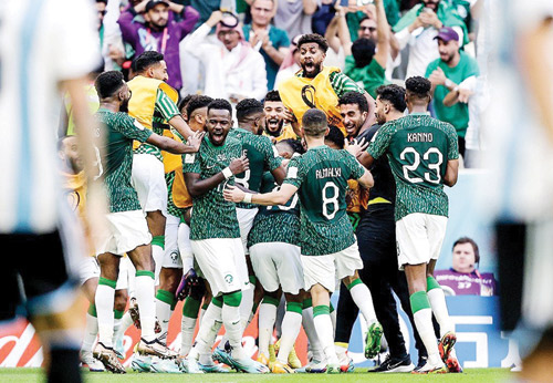 نعم ملحمة كروية تاريخية قدمها العويس وسلمان ورفاقهما، فحولوا تخلفهم بهدف «من علامة الجزاء» الى فوز صريح وثمين بهدفين لهدف ليحطموا منتخب التانغو بقيادة الاسطورة ليونيل ميسي وليؤكدوا للعالم أجمع ان « همة السعوديين مثل جبل طويق ، ولن تنكسر بحول الله».