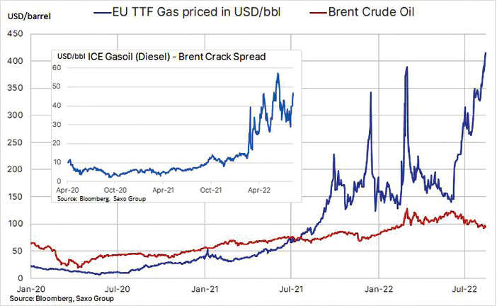 وتواجه توقعات الاقتصاد الكلي تحديات باستمرار، نتيجة التطورات الأخيرة في الاقتصاد الجزئي لسوق النفط والتي عززت احتمال حدوث انتعاش فيه، حيث تستمر أزمة الطاقة في أوروبا بالتفاقم، ما يؤدي إلى ارتفاع أسعار الغاز، وبالتالي دعم التوجه نحو المنتجات المعتمدة على الوقود. وذكرت وكالة الطاقة الدولية، في تقريرها الأخير، التحول من الغاز إلى النفط بالتحديد كسبب رئيسي دفعها إلى زيادة توقعاتها لنمو الطلب العالمي على النفط لعام 2022 بنحو 380 ألف برميل يومياً، لتصل إلى 2.1 مليون برميل يومياً. ومنذ نشر التقرير، اكتسب التحول مزيداً من الزخم، مؤدياً بدوره إلى ضغوط متزايدة على هوامش أرباح التكرير.