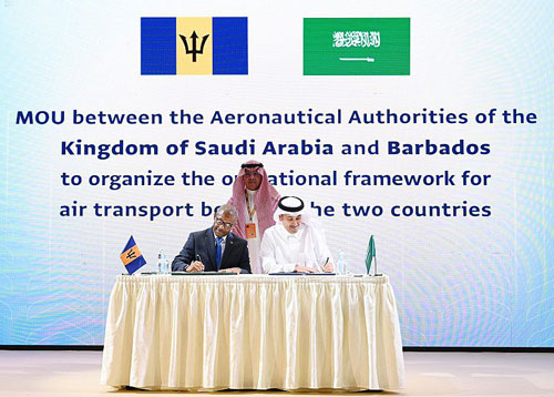 وقع معالي وزير النقل والخدمات اللوجستية رئيس مجلس إدارة الهيئة العامة للطيران المدني المهندس صالح بن ناصر الجاسر، مذكرة تفاهم لتنظيم الإطار التشغيلي للنقل الجوي والتأشير على مشروع اتفاقية في مجال خدمات النقل الجوي بين حكومة المملكة العربية السعودية وحكومة باربادوس، التي مثلها معالي وزير السياحة والنقل الدولي إيان جودينج إدجيل، بحضور معالي رئيس الهيئة العامة للطيران المدني الأستاذ عبدالعزيز بن عبدالله الدعيلج، وذلك على هامش فعاليات القمة العالمية للمجلس العالمي للسفر والسياحة (WTTC) في نسختها الثانية والعشرين والمقامة في الرياض. وتتضمن مذكرة التفاهم عدداً من البنود التشغيلية الخاصة بالنقل الجوي وتعددية تعيين الناقلات الوطنية، وتحديد عدد الرحلات الجوية المنتظمة بين الجانبين والنقاط التي يتم تشغيلها بين البلدين، إضافة إلى التعاون الثنائي بين الطرفين على أساس المنفعة المشتركة والاحترام المتبادل وفقاً للأنظمة والقوانين والتعليمات المعمول بها في كلا البلدين.