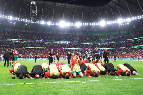 وضع المنتخب المغربي اسمه في سجل تاريخ بطولة كأس العالم بتحقيقه لإنجاز غير مسبوق كأول منتخب عربي ينجح في الوصول إلى الدور ربع النهائي من بطولة كأس العالم قطر2022 م، بفوزه على المنتخب الإسباني بركلات الترجيح 3/0. في المباراة التي جمعت المنتخبين على ملعب المدينة التعليمية ضمن مباريات دور الـ 16، وكانت المباراة قد انتهت بالتعادل السلبي في وقتيها الأصلي والإضافي، ليحتكم المنتخبان لركلات الترجيح التي أعلنت عن تأهله لدور الثمانية وإقصائهم للمنتخب الاسباني المدجج بالنجوم. وساهم الحارس المغربي «ياسين بونو» بدور كبير استحق عليه نجومية اللقاء في بلوغ منتخب بلاده لدور ربع نهائي لتصديه لركلتين من الركلات في حين تكفل القائم بالتصدي لواحدة، وأحرز الثلاثي عبدالحميد صابري، حكيم زياش وأشرف حكيمي بتسجيل ركلات الترجيح المغربية، وأضاع بدر بانون ركلة ليحقق أسود الأطلس أول إنجاز عربي بقيادة المدرب المغربي « الركراكي» ببلوغهم دور ربع نهائي المونديال.