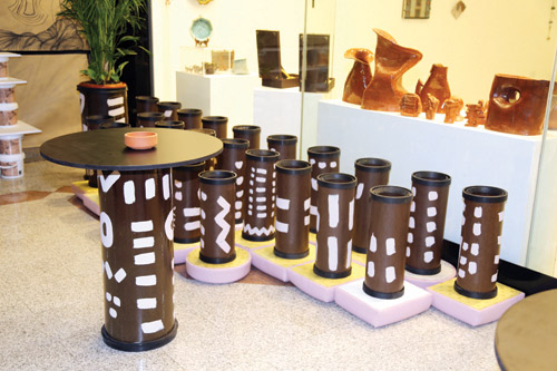وقال عطيف إن لديه أساليب مبتكرة وحديثة من حيث توظيف خامة السعف وتقديمها بصورة معاصرة من خلال الرسم بالأبعاد الثلاثة.. إضافة إلى توظيف خامة الطين وإعادتها بصورة معاصرة يستمتع فيها المشاهد بأكثر من حاسة للمس وخاصة النظر والشم.