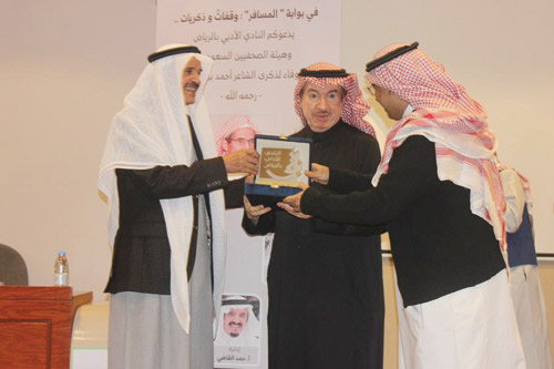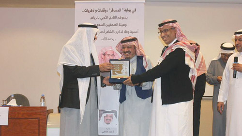 نظم النادي الأدبي بالرياض بالتعاون مع هيئة الصحفيين السعوديين أمسية وفاء لذكرى الشاعر الراحل (مسافر) أحمد بن صالح الصالح -رحمه الله - وذلك في مقر هيئة الصحفيين السعوديين في مدينة الرياض.