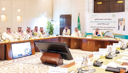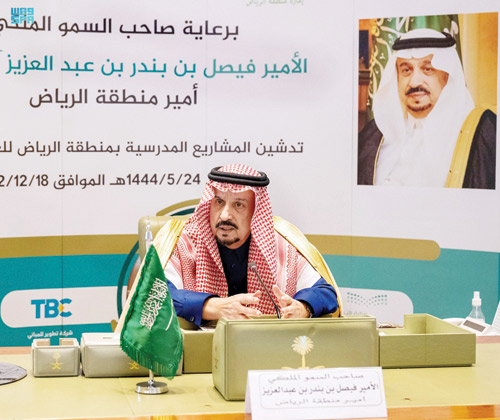 دشن صاحب السمو الملكي الأمير فيصل بن بندر بن عبدالعزيز أمير منطقة الرياض في مكتبه بقصر الحكم أمس (44) مشروعاً مدرسياً جديدًا للبنين والبنات في 17 حيًا داخل مدينة الرياض والمحافظات التابعة تعليميًا لإدارة التعليم للعام الدراسي 1444، بتكلفة بلغت أكثر من 769 مليون ريال، بحضور معالي وزير التعليم المهندس يوسف بن عبدالله البنيان وقادة التعليم بالمنطقة.