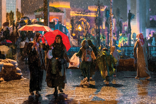 عاش زوار فعاليات موسم الرياض 2022، في عدد من المناطق أجواء ماطرة جميلة جمعت بين غزارة الفعاليات وجمال سماء العاصمة، الأمر الذي ضاعف متعة الزوار في منطقة بوليفارد وورلد، التي امتزجت فيها مياه البحيرة والمطر في صورة بهية زادت روعة المكان وجماليته.