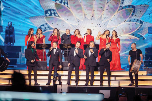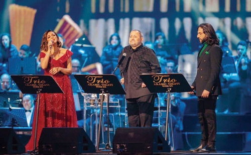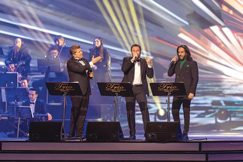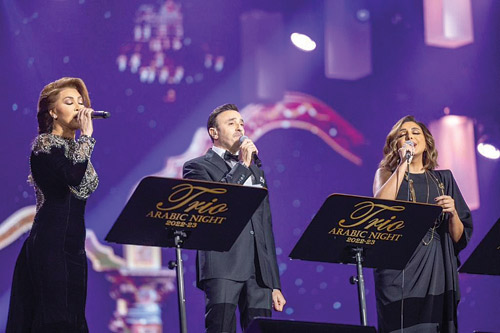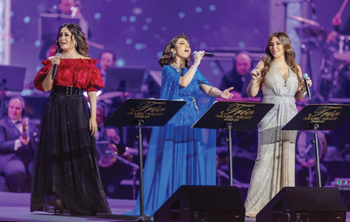 ووثّقت ليلة التريو أعمالاً غنائية جمعت النجوم العرب منذ سنين، ليعاد المشهد في موسم الرياض بطريقة حديثة ومتجددة وسط لمسات من ثلاثة مايستروهات موسيقية، تمثلت في أمير عبدالمجيد، ومدحت خميس، وهاني فرحات، الذين قادوا الفرقة الموسيقية بإبداع وتميز .