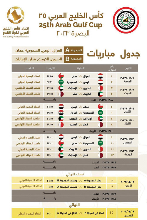 يذكر أن منتخب الإمارات يلعب في المجموعة الثانية إلى جانب منتخبات البحرين وقطر والكويت.