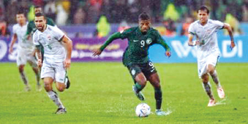 وبالعودة للمباراة فلم تظهر بالمستوى نظرا لكونها أقيمت على أرض غارقة بمياه الأمطار وسط تواصل هطولها طيلة فترات اللقاء الأمر الذي حد من تحرك الكرة واللاعبين وحد كثيرا من تقديم المستوى الفني المطلوب من الجانبين وإن استغل لاعبو العراق ذلك لصالحهم ليسجلوا هدفين على مدار الشوطين، وكان سعد الشهري مدرب الأخضرقد دخل اللقاء بتشكيل المباراة الأولى أمام عمان باستثناء تغيير واحد فقط بدخول سعد الناصر بدلا من تركي العمار.
