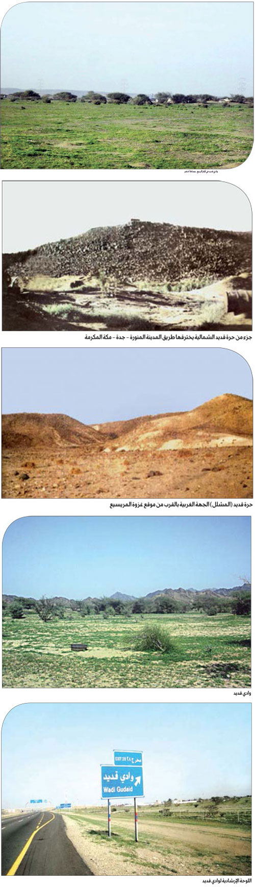 قديد.. قرية تاريخية أصبحت حالياً بلدة صغيرة معروفة لدى الجميع على الطريق السريع بين المدينة المنورة وكل من جدة ومكة المكرمة وتقع في وادي باسمها أي: وادي قديد، ولم تذكر قديد في أي فترة تاريخية بأنها مصدر يتم التزوّد منه، وإنما تذكر بالاسم وأحياناً يتم ذكرها صراحةً بأنها من الأماكن التي لا يجد المسافر ما يسد رمقه في هذه القرية، حتى أن رسول الله صلى الله عليه وسلم عندما مرّ بها أثناء هجرته نزل على أم معبد وهي بقديد، لم يجد عندها حتى اللبن، فنظر إلى شاة في كسر الخيمة فقال: «ما هذه الشاة يا أم معبد؟ قالت: خلفها الجهد عن الغنم، قال: «فهل بها من لبن؟ قالت: هي أجهد من ذلك، قال: «أتأذنين أن أحلبها؟ قالت: بلى بأبي أنت وأمي، نعم إن رأيت بها حلبا فاحلبها فدعا بها رسول الله صلى الله عليه وسلم فمسح بيده ضرعها وسمى الله ودعا لها في شاتها وامتلأ ضرعها باللبن فحلب منها وسقى أم معبد وأصحابه وشرب رسول الله صلى الله عليه وسلم آخرهم ثم حلب مرة أخرى حتى ملأ الإناء وتركه عندها حتى جاء زوجها أبو معبد فتفاجأ بوجود اللبن والقصة معروفة. السيرة النبوية لابن هشام (2/ 264) وقال عنها ابن كثير: «وقصتها مشهورة مروية من طرق يشد بعضها بعضا». البداية والنهاية (3/ 188).
