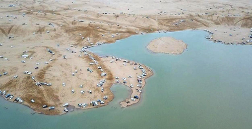 «الجزيرة» وعبر المصور الزميل طارق الناصر التقط عبر طائرة الدرون كثافة وزحمة الناس جلوساً على ضفاف بحيرات وادي الرمة التي شكلها داخل الرمال الذهبية.