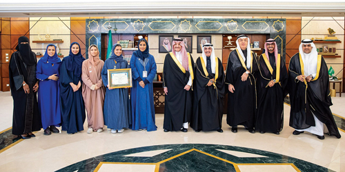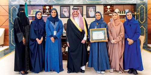 واستمع سموه خلال الاستقبال إلى شرح عن الجائزتين في دورتها الـ (22) والتي شارك فيها أكثر من 60 جامعة عربية وعالمية والفرق المتنافسة التي بلغ عددها 74 في مجالات متنوعة. وهنأ سمو أمير المنطقة الشرقية الطالبات: جواهر بوبشيت، سراء الشهري، لجين كماس، منيرة العمار، نورة العثمان بالفوز معرباً عن تمنياته لهن بالتوفيق والنجاح.