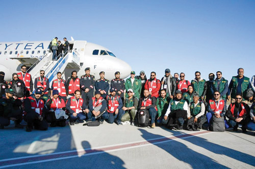 وتضم الفرق المشاركة فريق البحث والإنقاذ السعودي من المديرية العامة للدفاع المدني، وفريقاً طبياً من هيئة الهلال الأحمر السعودي، وفرقاً ميدانية تطوعية من جميع التخصصات التي وصلت إلى مطار غازي عنتاب في جمهورية تركيا، حتى يوم أمس الأول، وذلك ضمن الجسر الإغاثي السعودي الذي يسيره مركز الملك سلمان للإغاثة والأعمال الإنسانية لمساعدة متضرري الزلزال في سوريا وتركيا، تجسيداً للدور الإنساني النبيل للمملكة العربية السعودية، وما زالت المملكة تقوم بدورها الإنساني والإغاثي للمتضررين جراء الزلزال في سوريا وتركيا ميدانيا عبر جسرها الجوي الإغاثي في تلك المناطق المنكوبة.