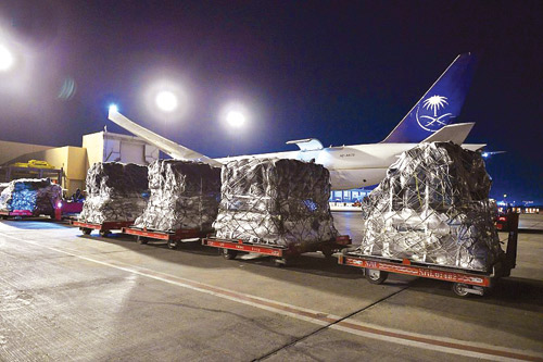 ووصل حجم التبرعات النقدية التي أطلقها مركز الملك سلمان للإغاثة والأعمال الإنسانية عبر منصة «ساهم» أكثر من 250 مليون ريال، وذلك حتى ظهر أمس السبت، وميدانياً تواصلت وصول طلائع الإغاثة السعودية الذي يسيره مركز الملك سلمان للإغاثة والأعمال الإنسانية، ووصلت حتى بعد ظهر أمس السبت، ست طائرات التي تقل فرق الإسعاف والإنقاذ المتخصصة من عدة وزارات وجهات سعودية، وفرق تطوعية للمشاركة في مساعدة المتضررين من الزلزال في سوريا وتركيا، وذلك في إطار الجهود الإنسانية والإغاثية التي تقدمها المملكة العربية السعودية، عبر ذراعها الإنسانية مركز الملك سلمان للإغاثة لدعم الفئات المتضررة والمنكوبة في مختلف أنحاء العالم بمختلف الأزمات والمحن التي تمر بهم.