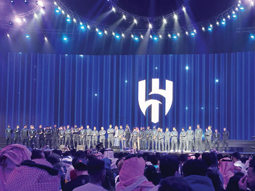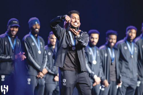 نجحت وزارة الرياضة وهيئة الترفيه مساء أمس بإقامة حفل فاخر يليق بوصيف بطل العالم للأندية الزعيم العالمي الفريق الهلالي فور وصول البعثة الى الرياض.. فجمع كبار الفنانين ماجد المهندس وراشد الفارس وفؤاد عبدالواحد، وغنوا للوطن وللقيادة وللبطل في ليلة وطنية فاخرة وفائقة الجمال، فتفاعل الحضور مع الليلة التاريخية التي شهدت حضور عدد من الشخصيات الهلالية الكبيرة والآلاف من الجماهير الهلالية. كانت البداية بتقديم نجوم الإنجاز لاعبي الفريق الهلالي فردا فردا مع الجهازين الإداري والفني فكانت البداية بكلمة لقائد الفريق الغائب الحاضر سلمان الفرج ومن ثم المعيوف وسالم الدوسري وكاريلو وميشيل وفييتو والكوري جانج هيون والذين كانت كلماتهم مختصرة تفاعل معها الجمهور الهلالي الكثيف الحاضر.