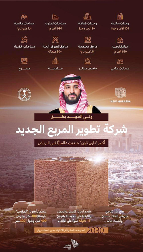 أعلن صاحب السمو الملكي الأمير محمد بن سلمان بن عبد العزيز آل سعود، ولي العهد رئيس مجلس الوزراء رئيس مجلس إدارة شركة تطوير المربع الجديد، - حفظه الله -، أمس، إطلاق شركة تطوير المربع الجديد، بهدف تطوير أكبر داون تاون حديث عالمياً في مدينة الرياض، مما يسهم في تطوير مستقبل العاصمة تماشياً مع مستهدفات رؤية السعودية 2030 .