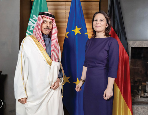 التقى صاحب السمو الأمير فيصل بن فرحان بن عبدالله وزير الخارجية، مساء أمس الأول، معالي وزيرة خارجية جمهورية ألمانيا الاتحادية أنالينا بيربوك، وذلك على هامش أعمال مؤتمر ميونخ للأمن 2023 في جمهورية ألمانيا الاتحادية.