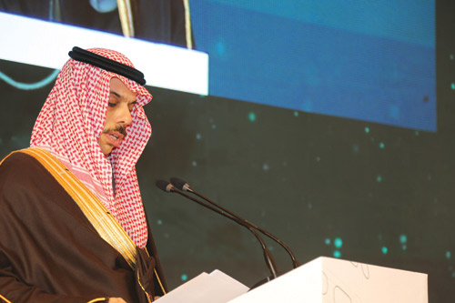 بعد ذلك ألقى صاحب السمو وزير الخارجية الأمير فيصل بن فرحان كلمة جاء فيها: «استمداداً من قِيَم ديننا الإسلامي الحنيف، طالما دأب ملوك المملكة العربية السعودية منذ تأسيسها على يد الملك عبدالعزيز بن عبدالرحمن آل سعود -طيب الله ثراه- وأبنائه الأبرار من بعده وصولاً إلى العهد الميمون لمولاي خادم الحرمين الشريفين الملك سلمان بن عبدالعزيز آل سعود - حفظه الله - على حشد إمكاناتها من أجل خدمة القضايا الإنسانية ومد يد العون لرفع المعاناة عن المتضرر وإغاثة الملهوف أينما وجدت الحاجة، دون تمييز عرقي أو ديني، وقد بلغ حجم المساعدات التي قدمتها المملكة 95 مليار دولار أمريكي، استفادت منها 160 دولة حول العالم عبر 7 عقود». وأضاف سموه أنه في خضم الأزمات والتحديات الجيوسياسية والاقتصادية، تستمر المملكة بالتقدم في عطائها الإنساني والتنموي؛ مما جعلها في مقدمة الدول المانحة للمساعدات الإنمائية والإنسانية إلى الدول المنخفضة والمتوسطة الدخل بمبلغ يتجاوز 7 مليارات دولار أمريكي. واستذكر سموه أن آخر الجهود الإنسانية للمملكة هو توجيه خادم الحرمين الشريفين وسمو ولي العهد -حفظهما الله- بتسيير جسر جوي وتقديم مساعدات إنسانية متنوعة وتنظيم حملة شعبية، لتخفيف آثار الزلزال على الشعبين السوري والتركي، المعاناة التي تألم لها العالم أجمع، وإذ نقف اليوم احتراماً وتقديراً لكل فرد بذل جهداً أو مالاً لضحايا الزلزال المدمر، فإن هذه الأحداث المتكررة تذكرنا بحاجتنا الماسة لإنسانية بلا حدود، لضمان صون الإنسان وكرامته، وتدفعنا لمضاعفة الجهود في سبيل تجنب ويلات الحروب، والتعاون لمواجهة الكوارث، وضمان إيصال المساعدات لمستحقيها تماشياً مع القانون الدولي الإنساني ومبادئ العمل الإنساني. وبيَّن أن المملكة قد عملت بشكل استباقي للحد من تدهور أوضاع الدول والمجتمعات المتضررة، والسعي لإيجاد الحلول العملية والفاعلة من خلال التعاون الإقليمي والدولي حيث أعلنت المملكة في العامين الماضيين عن سلسلة من المبادرات التي تجاوزت المستوى الوطني، وأثبتت ريادة المملكة في شؤون المناخ على المستويين الإقليمي والعالمي، وتم الإعلان عن تأسيس مركز إقليمي لدول الشرق الأوسط وشمال إفريقيا لخفض الانبعاثات الكربونية ومقره الرياض مع المجلس الاقتصادي والاجتماعي التابع للأمم المتحدة لغرب آسيا «الإسكوا»، وهذا التعاون يجسد أهمية العلاقات متعددة الأطراف لدعمالتوازن والسلام والتنمية وتجاوز الأزمات العالمية.