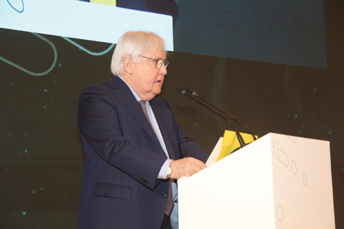 ثم ألقى وكيل الأمين العام للشؤون الإنسانية ومنسق الإغاثة في حالات الطوارئ مارتن غريفيث كلمة معالي الأمين العام للأمم المتحدة انطونيو غوتيرش شكر في بدايتها المملكة العربية السعودية، موضحاً أن المشهد الإنساني الماثل أمامنا هو مشهد قاسٍ، فالاحتياجات تتصاعد في جميع أنحاء العالم والأزمات الإنسانية تتراكم فوق بعضها البعض، فيما يتطلع اليائسون إلينا في وقت الحاجة، وتتعرض حقوق الإنسان وخاصة حقوق المرأة لهجوم وحشي في العديد من الأماكن مما يضر بمجتمعات بأكملها، مشيراً إلى أن العالم يعيش أكبر أزمة غذاء في التاريخ الحديث والمجاعة تدق على العديد من الأبواب، مفيداً أن التوترات عالية من حرب أوكرانيا التي على وشك دخولها عامها الثاني إلى كارثة زلزال تركيا وسوريا الذي أودى بحياة عشرات الآلاف وتسبب في دمار لا يوصف. وأضاف مارتن غريفيث أن أكثر من 350 مليون شخص يحتاجون إلى المساعدة الإنسانية حول العالم، وأكثر من 222 مليون شخص لا يعرفون متى سيأكلون وجبتهم التالية، أو ما إذا كانوا سيجدون ما يأكلونه أصلاً، و45 مليون شخص باتوا بالفعل على شفا المجاعة، معظمهم من النساء والأطفال، ونحن بحاجة إلى ما يقارب 54 مليار دولار أمريكي لتلبية الاحتياجات الأساسية للأشخاص الأكثر تضرراً. ودعا غريفيث لإنهاء الحروب والصراعات التي نعرفها ووقف اندلاع نزاعات جديدة، ومعالجة تغير المناخ بشكل مباشر، لأن كل فيضان أو موجة حر أو جفاف أو عاصفة شديدة تترك في أعقابها أزمة إنسانية، وكذلك اتخاذ إجراءات حاسمة لخفض الانبعاثات والتحول من الوقود الأحفوري إلى الطاقة المتجددة. وذكر أنه استجابة لهذه الحالة الطارئة، أعلن الأمين العام للتو عن مبلغ غير مسبوق قدره 250 مليون دولار من صندوق الطوارئ التابع للأمم المتحدة، الصندوق المركزي لمواجهة الطوارئ، حيث ستمكّن هذه الأموال من اتخاذ إجراءات مبكرة والاستباق على الأزمات القائمة بما في ذلك المجاعات. وفي ختام كلمته أكد غريفيث أنه لا يمكن للعمل الإنساني أن يقف بمفرده، فنحن بحاجة إلى كل الأيدي على سطح السفينة، من خلال العمل معًا لإيقاف النزاعات ومعالجة حالة الطوارئ المناخية ومحاربة المجاعات والاستعداد لحالات الطوارئ التالية التي ستظل حتماً قاب قوسين أو أدنى.