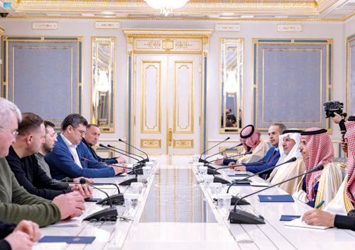 حضر اللقاء سفير خادم الحرمين الشريفين لدى أوكرانيا محمد المسهر الجبرين، ومدير عام مكتب سمو وزير الخارجية عبدالرحمن الداود. كما التقى سمو وزير الخارجية أمس معالي مدير مكتب الرئيس الأوكراني أندريه يرماك، وذلك في مقر الرئاسة في العاصمة كييف. وجرى خلال اللقاء استعراض جهود المملكة العربية السعودية الرامية إلى إيجاد حلول سياسية للأزمة الأوكرانية، وأوجه المساعدات المقدمة من المملكة لأوكرانيا وشعبها الصديق بهدف التخفيف من آثار الأزمة. كما تطرق الجانبان إلى أوجه تكثيف العلاقات الثنائية وفرص تطويرها، بالإضافة إلى بحث عدد من القضايا والمستجدات الإقليمية والدولية ذات الاهتمام المشترك.