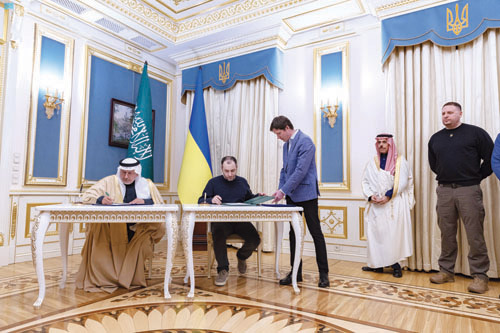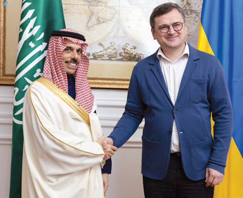 كما التقى سمو وزير الخارجية أمس بمعالي وزير خارجية أوكرانيا ديميترو كوليبا، وذلك على هامش زيارة سموه الرسمية لأوكرانيا. وجرى خلال اللقاء مناقشة مستجدات الأزمة في أوكرانيا، مع التأكيد على دعم المملكة لكل ما يسهم في خفض حدة التصعيد وحماية المدنيين والسعي الجاد نحو الحلول السياسية التفاوضية، ودعم جميع الجهود الدولية الرامية لحل الأزمة سياسياً. كما تطرق الجانبان إلى فرص تعزيز التعاون الثنائي بين البلدين الصديقين وسبل دعمها وتطويرها في العديد من المجالات، بالإضافة إلى مناقشة المستجدات على الساحتين الإقليمية والدولية.