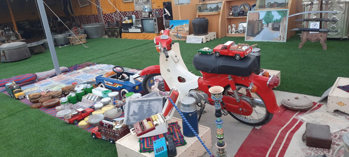 ففي الجولة رصدت «الجزيرة» أكثر الأجنحة رواجاً جناح المقتنيات القديمة لتجد العديد من الأواني المنزلية التراثية، وأجهزة الهواتف التي استخدمت مع ثورة الاتصالات التقليدية، إلى الأسطوانات الصوتية، فالأشرطة الكاسيت والكاترج والفيديو، وبعض من العملات النقدية، والسيوف، والآلات العزف التقليدية التي عاصرها (زمن الطيبين)، إضافة إلى عرض خاص لصور ملوك المملكة العربية السعودية، ومن الصدف الجميلة أن نشاهد عرضاً لعدد من الصحف والجرائد الوطنية ومنها نسخة نادرة من صحيفة الجزيرة التي يعود تاريخ طباعتها إلى عشرات السنين، وقد ذكر المؤرخ راشد الحوطي المسوؤل عن هذا المعرض الذي يحوي على مقتنيات تراثية تجاوز عمرها الـ50 عاماً.
