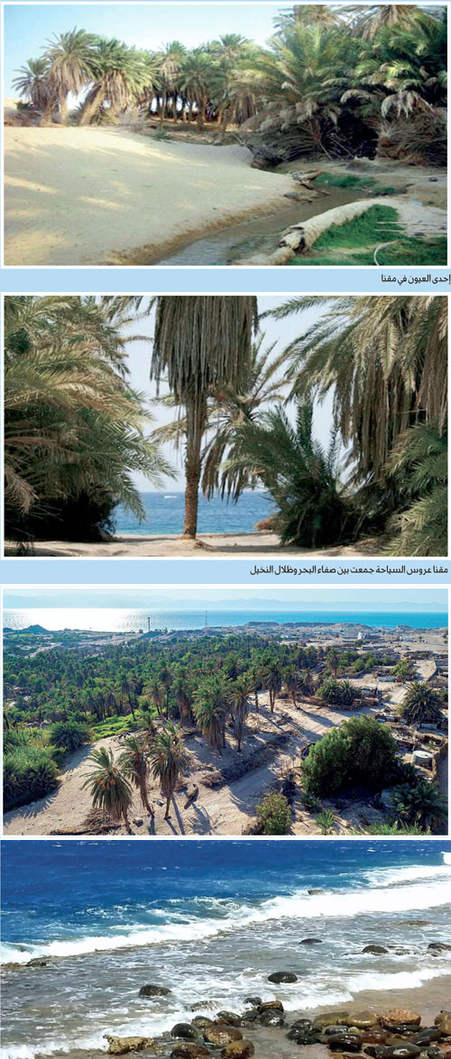 وتشتهر مقنا بشاطئ بكر حيث يتميز بجمال خلجانه وبالتدرجات اللونية لتشكيلاته الرملية وبتنوع بيئته البحرية، كما تتميز بعيون مياه قديمة تنبع في أرض مرتفعة مطلة على شاطئ مقنا، ومخترقة مزارع النخيل الواقعة في مدخل مقنا من جهة الشرق.
