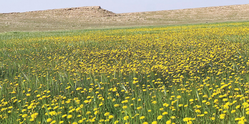 ازدانت محافظة طريف بمنطقة الحدود الشمالية بالمساحات الخضراء والنباتات الربيعية التي تشتهر بها المنطقة، لتضيف عليها مزيجاً من الجمال في دلالة على قدوم ربيع متميز، وذلك بعد الأمطار التي شهدتها المحافظة.