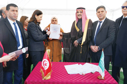 أشرف سفير خادم الحرمين الشريفين لدى تونس الدكتور عبدالعزيز بن علي الصقر، ووزيرة التجهيز والإسكان التونسية سارة الزعفراني، أمس الأول، على تسليم 87 وحدة سكنية ممولة من الصندوق السعودي للتنمية، في مدينة غار الدماء التابعة لمحافظة جندوبة شمال غرب تونس. وتتضمن المرحلة الأولى من المشروع تقديم 4715 مسكنًا اجتماعيًا بتمويل ميسر من الصندوق السعودي للتنمية تبلغ قيمته 150 مليون دولار أمريكي. وعبرت وزيرة التجهيز والإسكان سارة الزعفراني عن سعادتها البالغة بهذا الإنجاز الذي سيسمح لعدد من العائلات محدودة الدخل بعيش حياة كريمة، مشيرة في تصريح لوكالة الأنباء السعودية، أن هذا المشروع ستلحقه مشاريع مماثلة قريبة من شأنها أن تحسن من حياة عدد من العائلات المحدودة الدخل.