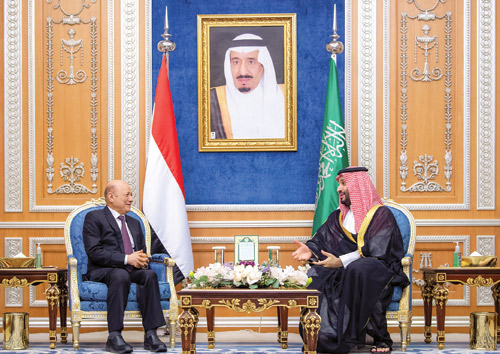 اجتمع صاحب السمو الملكي الأمير محمد بن سلمان بن عبدالعزيز آل سعود ولي العهد رئيس مجلس الوزراء، في الديوان الملكي بقصر اليمامة مساء أمس الأول، مع فخامة رئيس مجلس القيادة الرئاسي اليمني الدكتور رشاد العليمي، وأعضاء المجلس. وجرى خلال الاجتماع استعراض مستجدات الأوضاع على الساحة اليمنية، والتأكيد على استمرار دعم المملكة للمجلس والحكومة اليمنية والشعب اليمني الشقيق، ودعم كل الجهود للتوصل لحل سياسي شامل في اليمن برعاية الأمم المتحدة لتحقيق الأمن والاستقرار والتنمية في اليمن. حضر الاجتماع معالي رئيس الاستخبارات العامة الأستاذ خالد الحميدان، وسفير خادم الحرمين الشريفين لدى اليمن محمد آل جابر.