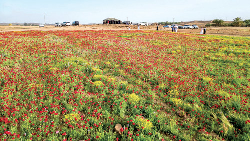 وقد انتشر «الديدحان» على مساحات واسعة من صحاري منطقة الجوف مما ألبس الأرض حلة قشيبة تعجز عن تصويرها لوحة الفنان الماهر. وبيّن الأستاذ بجامعة الجوف الدكتور بسام العويش أن الديدحان من النباتات الحولية العشبية ذات الأوراق الخضراء المزرقة المفصّصة التي تميل إلى النباتات مسننة الزهرة شديدة الحُمرة بعنق قائم بارتفاع 50 سم، ويغطيها من الأعلى قرص بداخله عدد من البذور صغيرة الحجم ينتشر في: الحرة، والحماد، ووديان الجوف، وفي منطقة الحدود الشمالية.
