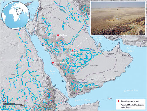 لقد كان للطبيعة المناخية تأثير كبير على الإنسان القديم وهجرته، فكان مناخ شبه الجزيرة العربية ممطرا قبل ثلاثة ملايين سنة، وكانت أرضها غابات استوائية تتدفق منها ثلاثة أنهار،تمثل أكبر أنهار العالم اليوم مساحة وتدفقا، فكانت الأنهار الثلاثة تصب فيما يعرف اليوم بالخليج العربي.