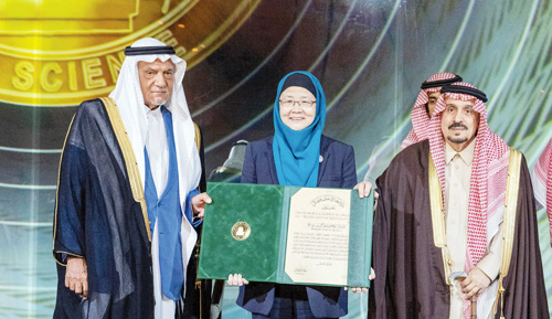 أما جائزة الطب، مُنحت بالاشتراك للأستاذ الدكتور دان هون بوروك من الولايات المتحدة الأميركية، والأستاذة الدكتورة سارة كاثرين غيلبيرت من مملكة بريطانيا، فيما فاز بجائزة العلوم الأستاذة الدكتورة جاكي يي-رو ينغ، بالاشتراك مع الأستاذ الدكتور تشاد ألكساندر ميركن من الولايات المتحدة الأمريكية. وقد سلم صاحب السمو الملكي الأمير فيصل بن بندر بن عبدالعزيز الجوائز للفائزين مهنئاً إياهم بهذا الإنجاز. وتميّزت جائزة خدمة الإسلام هذا العام بتكريمها لأوّل مرة لفائز من الجنسيّة الكوريّة، وهو الأستاذ الدكتور تشوي يونج كيل - حامد، أستاذ الدراسات الإسلامية (سابقًا) في جامعتي ميونجي، وهانكوك للدراسات الأجنبية في جمهورية كوريا الجنوبية، ورئيس صندوق هبة الإسلامي الكوري. وقد منح الجائزة لجهوده الدعوية والتعليمية، المتمثلة في تدريسه اللغة العربية والعلوم الإسلامية في الجامعات الكورية، وإلقاء الدروس والمحاضرات العلمية لتعريف بالإسلام، وتأليفه وترجمته لعدد كبير من الكتب الإسلامية التي أسهمت في نقل الثقافة الإسلامية إلى مجتمعات الشرق الأقصى، إضافة إلى دوره البارز في عدد من المنظمات الإسلامية التي يتمتع بعضويتها وتميزه بشخصية علمية رصينة، وانفتاح فكري، واعتدال، ووسطية. وقد أعرب الأستاذ الدكتور تشوي يونج كيل -حامد في كلمته خلال الحفل عن شعوره بمسؤولية أكبر للتعريف بالثقافة الإسلامية والعربية للمجتمع الكوري. كما مُنحت جائزة خدمة الإسلام أيضًا إلى فضيلة الشيخ ناصر بن عبدالله الزعابي، رئيس المجلس الدائم لصندوق التضامن الإسلامي بمنظمة التعاون الإسلامي، لجهوده في العمل الخيري والإغاثي من خلال عضويته في عدد من الجمعيات والمؤسسات الخيرية وتنظيمه المؤتمرات والمنتديات والندوات ذات العلاقة بالعمل الخيري، ولإدارته الحكيمة في رئاسته المجلس الدائم لصندوق التضامن الإسلامي بمنظمة التعاون الإسلامي، حيث شهد الصندوق توسعًا وتنوعًا في نشاطاته، عادت بالنفع على الشعوب الإسلامية مما أعطى صورة مشرقة للعمل الإسلامي المعاصر.وقال في كلمته خلال الحفل»ولحظة الانطلاق لخدمة هذا الإسلام حاضرة في كل آن ومكان، خدمة الإسلام في نفسك وفي أسرتك وفي وطنك ومجتمعك وفي محيطك الإنساني الشاسع، تربية وتعليمًا ودعوة، إغاثة وعملاً خيريًا متنوعًا ومتشعبًاً، كتابةً وتوجيهًا وعونًا لمن يحتاج العون، خاصة في أيامنا هذه، حيث زاد الفقر والجهل وكرت الحروب وعم الغلاء واستشرت الأمراض.» وفي فرع الدراسات الإسلامية والتي تناول موضوعها هذا العامّ في «العمارة الإسلامية»، فتسلّم الجائزة البروفيسور روبرت هيلينبراند، الأستاذ في جامعة إدنبرة في اسكتلندا، الذي يعتبر مرجعيّة أساسيّة في مجال العمارة الإسلاميّة وإضافة كبيرة للدراسات الإسلامية فقد درس العمارة الإسلاميّة باستخدام منهجيّة متميّزة فاتّسمت أعماله بالشمولية الواسعة جغرافيًا وزمنيًا، حيث غطّت شمال أفريقيا، ومصر، وفلسطين، ووسط آسيا وامتدّت من مراحل الإسلام الأولى حتى القرن التاسع عشر الميلادي. نُشر له 11 كتابًا أهمّها «الصور الإمبراطورية في اللوحات الفارسية»عن الفن والعمارة الإسلامية، و»مقدمة في عمارة القدس في العهد العثماني» وكتاب «العمارة الإسلامية: الشكل والوظيفة والمعنى» و»نادرة مغمورة من الإمبراطورية المغولية ببلاد فارس»، كما صدر له أربعة مجلدات تجمع مقالاته: «دراسات في العمارة الإسلامية في العصور الذهبية» بجزأيه الأول والثاني و»دراسات في الفنون الإسلامية للمخطوطات» و»دراسات في الفنون الإسلامية الزخرفية». وأشار البروفيسور روبرت هيلينبراند إلى وَقع أمجاد العمارة والفنون الإسلامية على طلابه في الغرب قائلا، «لقد كان من دواعي سرور ي واعتزازي أن أفتح أعين وعقول آلاف الطلاب في الغرب على أمجاد العمارة والفنون الإسلامية، وتعريفهم في سن مبكرة من خلال ذلك بالثقافة الإسلامية باعتبار هذه الطريقة وسيلة ضرورية للخوض في عالم غير معروف سابقا، بل