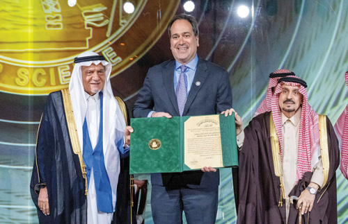 برعاية خادم الحرمين الشريفين الملك سلمان بن عبدالعزيز آل سعود، ونيابة عنه - حفظه الله -، حضر صاحب السمو الملكي الأمير فيصل بن بندر بن عبدالعزيز أمير منطقة الرياض مساء أمس حفل تسليم جائزة الملك فيصل العالمية للفائزين في دورتها الخامسة والأربعين لعام 2023. وعند وصول سموه لمقر الحفل كان في استقباله صاحب السمو الملكي الأمير تركي الفيصل رئيس مجلس إدارة مركز الملك فيصل للبحوث والدراسات الإسلامية، وصاحب السمو الملكي الأمير بندر بن خالد الفيصل المستشار في الديوان الملكي ورئيس هيئة الفروسية، ثم عزف السلام الملكي. بعدها بدأ الحفل بتلاوة آيات من القرآن الكريم، ثم ألقى صاحب السمو الملكي الأمير تركي الفيصل كلمة نوه فيها بذكرى الملك فيصل بن عبدالعزيز آل سعود - رحمه الله -، داعياً الله جل في علاه أن يحفظ هذه البلاد في ظل قيادتها الرشيدة خادم الحرمين الشريفين وسمو ولي عهده الأمين- حفظهم الله-. وقدم سموه الترحيب بصاحب السمو الملكي الأمير فيصل بن بندر بن عبدالعزيز أمير منطقة الرياض والحضور. بعدها قدم الأمين العام لجائزة الملك فيصل العالمية الدكتور عبدالعزيز السبيل الفائزين بفروع الجائزة، حيث مُنحت جائزة خدمة الإسلام، بالاشتراك: للأستاذ الدكتور تشوي يونج كيل - حامد كوري الجنسية، ويشاركه في الجائزة من الإمارات فضيلة الشيخ ناصر بن عبدالله الزعابي، الذي ارتبطت جهوده بالأعمال الخيرية والإغاثية، ومُنحت جائزة الدراسات الإسلامية للأستاذ الدكتور روبرت هيلينبراند من مملكة بريطانيا، بينما مُنح الأستاذ الدكتور عبدالفتاح كيليطو من المملكة المغربية، جائزة اللغة العربية والأدب.
