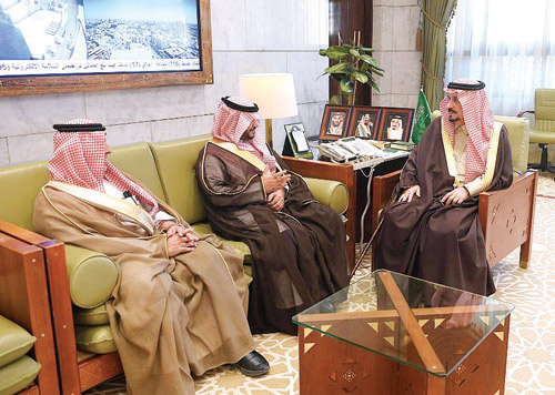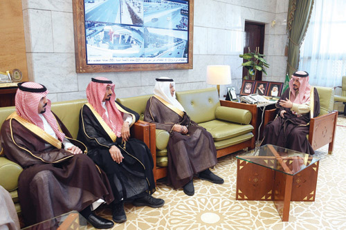من جانبه قدّم الدكتور خرمي شكره وامتنانه لسموه لرعايته الدائمة ومتابعته المستمرة لتعليم الرياض، مشيراً إلى أن القفزات والنجاحات التي حققتها الإدارة على المستوى المحلي والإقليمي والدولي جاءت نتيجة متابعة سموه وتوجيهاته المستمرة. وتسلّم سموه نسخة من تقرير فعاليات احتفاء إدارة التعليم بمناسبة يوم «التأسيس»، وتقريراً عن الاحتفاء بيوم «العلم». كما اطلع على تقرير مفصل عن آلية تقسيم المكاتب الجديدة والتوزيع الجغرافي للمكاتب وتقليص أعدادها إلى 15 مكتباً لتغطية أحياء مدينة الرياض والمحافظات التابعة لها كافة لتقديم أفضل الخدمات للمستفيدين. كما استقبل سمو أمير منطقة الرياض في مكتبه بقصر الحكم أمس معالي مساعد وزير الموارد البشرية والتنمية الاجتماعية للخدمات المشتركة إسماعيل بن سعيد الغامدي بمناسبة تعيينه في منصبه الجديد، ومدير فرع وزارة الموارد البشرية والتنمية الاجتماعية بالمنطقة الدكتور محمد بن عبدالله الحربي. وأعرب سموه عن تمنياته لمسؤولي الوزارة التوفيق والنجاح في أعمالهم. كما استقبل سمو أمير منطقة الرياض في مكتبه بقصر الحكم أمس رئيس مجلس إدارة اتحاد الغرف السعودية حسن بن معجب الحويزي وأعضاء مجلس إدارة الاتحاد رؤساء وممثلي الغرف التجارية على مستوى المملكة. وهنأ سموه الحويزي بمناسبة انتخابه رئيساً لمجلس إدارة اتحاد الغرف السعودية، متمنياً له التوفيق والنجاح.