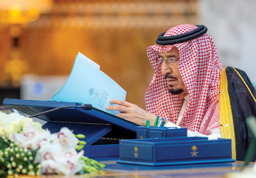 رأس خادم الحرمين الشريفين، الملك سلمان بن عبدالعزيز آل سعود - حفظه الله -، الجلسة التي عقدها مجلس الوزراء، أمس في قصر عرقة بالرياض. وفي بداية الجلسة، أعرب خادم الحرمين الشريفين عن خالص التهاني للمواطنين والمواطنات والمسلمين في كل مكان بمناسبة قرب حلول شهر رمضان المبارك، مبتهلاً إلى المولَى جل وعلا أن يحمل في ظلاله هذا العام للأمة الإسلامية وللعالم أجمع بشارات الأمل والسلام.