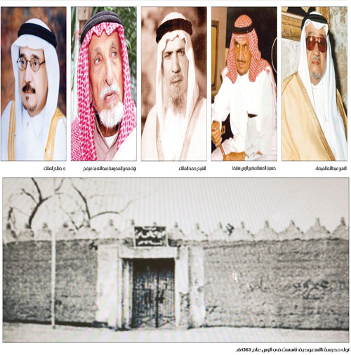 تخرج من هذه المدرسة العديد ممن أسهموا في خدمة هذا الوطن الغالي في شتى المجالات تحية لهم وتحية خاصة للزملاء الأربعة الباقين على قيد الحياة، ولكل من شنّفت سمعه صفارة صالح القريان، وسلاماً خاصاً وشكراً من القلب لكل من أستاذي صالح الحمد المالك الذي كافأني في السنة الأولى بقلم رصاص مستعمل عندما نطقت فعل «قطع» المكتوب على السبورة قافاً فصيحة وقد عجز غيري، والأستاذ محمد الحمد المالك الذي تتلمذت على يده في السنوات اللاحقة وهما الباقيان من الرواد، والرحمة والرضوان لأرواح كل من علمني حرفاً في تلك المدرسة الغالية على نفسي، ومرحى كلما سجع الحمام للأستاذ الرائد عبدالله العبدالرحمن العرفج. رحمه الله وأسكنه جنات عدن تجري من تحتها الأنهار. وكل الحب لمدينتي الحبيبة الرس مرتع الطفولة والصبا، رمز الكرامة والصمود وعاشت بلادي وملكها المفدى سلمان بن عبدالعزيز وولي عهده الأمين محمد بن سلمان. كانت مدرسة واحدة في عام 1363 هجرية وبعد ثمانين عاماً صارت الرس تحتضن بين دفتيها عشرات المدارس والمعاهد والكليات المتخصصة، نموذج لنهضة شاملة جاءت الرؤية على يد خادم الحرمين الشريفين وولي عهده الأمين لتجعلها نظام حياة خاضعاً للرصد والتحديث والمتابعة. عاشت بلادي حرة أبية.
