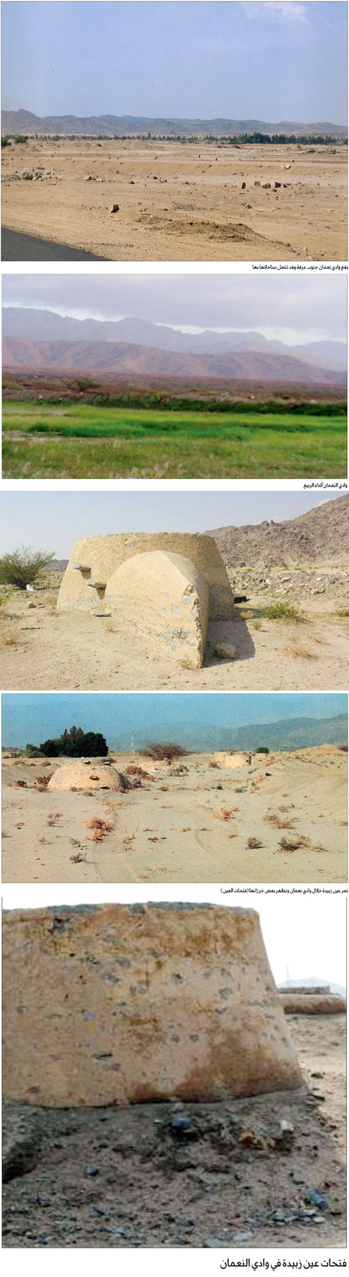 كما تمرّ بهذا الوادي الشهير عين زبيدة المشهورة حتى تصل مكة المكرمة، ولاتزال خرزات (فتحات) العين موجودة، وقد اقترب وادي النعمان من مكة المكرمة وسيصبح حياً من أحيائها.