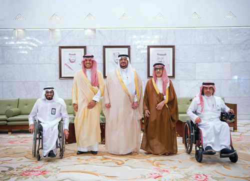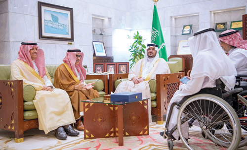 استقبل صاحب السمو الملكي الأمير محمد بن عبدالرحمن بن عبدالعزيز نائب أمير منطقة الرياض في مكتبه بقصر الحكم أمس رئيس مجلس إدارة جمعية الإعاقة الحركية للكبار»حركية» المهندس ناصر بن محمد المطوع وأعضاء الجمعية. واطلع سموه على تقرير عن أعمال ومشاريع الجمعية وإنجازاتها وبرامجها وأنشطتها الموجهة للمعاقين، مشيدًا بالدور الذي تقدمه الجمعية، متمنيًا للقائمين عليها التوفيق والسداد.