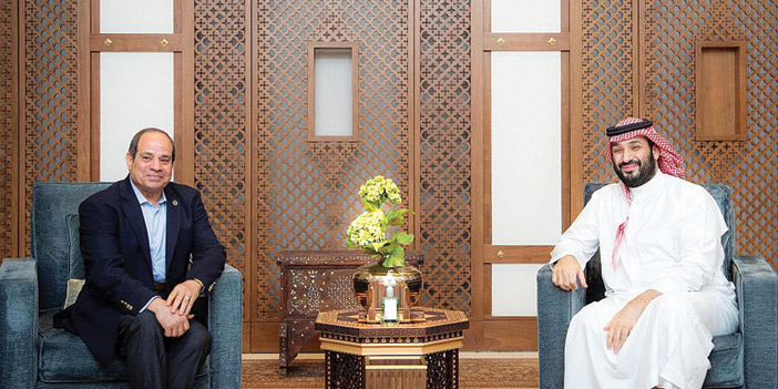 ورحب سمو ولي العهد في بداية اللقاء، بفخامة رئيس جمهورية مصر العربية في بلده الثاني المملكة، فيما عبّر فخامته عن الشكر لأخيه سمو ولي العهد على الحفاوة وكرم الضيافة التي استُقبل بها والوفد المرافق.