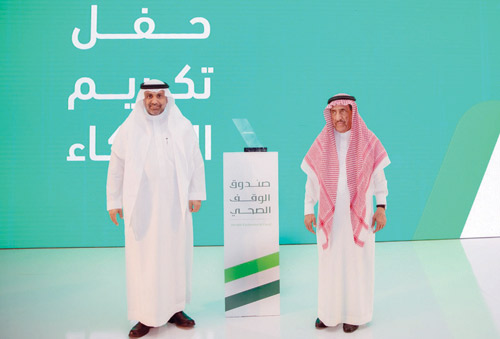 برعاية معالي وزير الصحة رئيس مجلس إدارة صندوق الوقف الصحي الأستاذ فهد بن عبدالرحمن الجلاجل أقام صندوق الوقف الصحي حفلاً تكريمياً للداعمين والشركاء لمسيرة عمله، وذلك بحضور نائب رئيس مجلس إدارة صندوق الوقف الصحي مستشار معالي وزير الصحة الدكتور محمد بن عبدالله القاسم، وبحضور معالي الشيخ الدكتور عبدالله بن محمد المطلق عضو هيئة كبار العلماء المستشار بالديوان الملكي ورئيس اللجنة الشرعية في صندوق الوقف الصحي، وبمشاركة عشرات الداعمين من رجال أعمال وأفراد ومؤسسات مانحة وشركات تجارية.