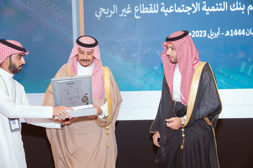 رعى الأمير عبدالرحمن بن عبدالله بن فيصل محافظ المجمعة مساء أول أمس ملتقى منتجات القطاع غير الربحي الذي أقامه بنك التنمية الاجتماعية بمحافظة المجمعة، وذلك للتعريف ودعم القطاعات التي تسهم في التنمية المستدامة والنهوض بها لتحقيق مستهدفاتها التنموية والخيرية وتعريف الجميع بأحدث البرامج والمنتجات المقدمة من بنك التنمية الاجتماعي لدعم تلك القطاعات، وكان في استقبال سموه لدى وصولة مكان الحفل الدي أقيم بقاعة طويق للاحتفالات بالمجمعة مدير بنك التنمية الاجتماعية بالمحافظة الأستاذ ثنيان بن عبدالله الثنيان وعدد من منسوبي البنك، ثم بدأ الحفل بالقرآن الكريم رتله عبدالعزيز بن عثمان اليوسف، ثم قُدمت نبذة عن بنك التنمية الاجتماعية فعرض عن أحدث المنتجات التمويلية للقطاع غير الربحي، تلاه تكريم سمو المحافظ بدرع تذكاري تقديراً وعرفاناً لدعمه لبنك التنمية الاجتماعية. كما تم تكريم جمعية سواعد بمحافظة المجمعة لمساهمتها المجتمعية في نجاح هذا الملتقى واختتم الملتقى بجلسة حوارية وتعريفية شارك فيها عدد من الحضور.