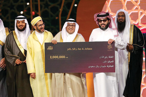 كرّم معالي المستشار تركي بن عبدالمحسن آل الشيخ رئيس مجلس إدارة الهيئة العامة للترفيه، في الحلقة الختامية لبرنامج عطر الكلام التي عُرضت مساء أمس الأول، الفائزين العشرين بالجوائز المليونية، إذ فاز السعودي محمد آل الشريف بالمركز الأول في فئة الأذان بمبلغ مليوني ريال، والإيراني يونس شاهمرادي في فئة التلاوة بمبلغ 3 ملايين ريال. وحصدت المسابقة التي اختتمت منافساتها يوم أمس 6 شهادات من موسوعة غينيس للأرقام القياسية، إذ سُجلت أكبر مسابقة قرآن من حيث الدول المشاركة، كما صُنفت أكبر مسابقة أذان من حيث عدد الدول المشاركة، وحصدت رقمًا قياسيًا في عدد المشاركين ضمن تنافسات القرآن، كما سجلت رقمًا آخر هو أكبر المسابقات استقطابًا للمشاركين في رفع الأذان، ورقمين قياسيين آخرين بصفتها صاحبة أكبر الجوائز في مسابقات القرآن، وأيضًا مسابقات الأذان.