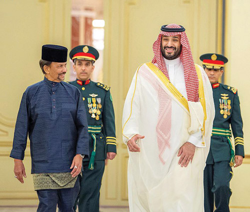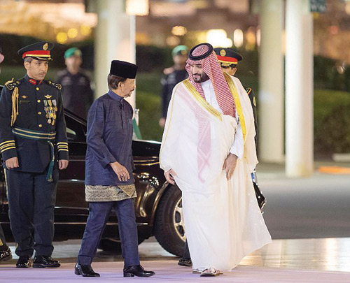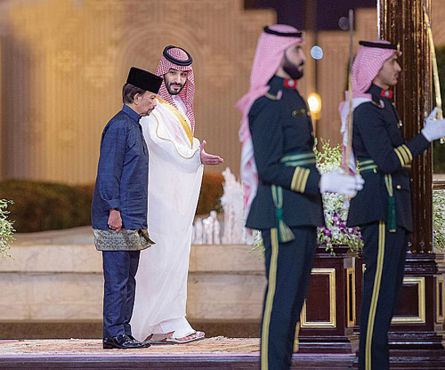 استقبل صاحب السمو الملكي الأمير محمد بن سلمان بن عبدالعزيز آل سعود ولي العهد رئيس مجلس الوزراء، في الديوان الملكي بقصر السلام بجدة، أمس، جلالة السلطان حاج حسن البلقيه سلطان بروناي دار السلام. وقد أجريت لجلالته مراسم الاستقبال الرسمية. وعقد سمو ولي العهد وجلالة سلطان بروناي دار السلام اجتماعاً رحب سمو ولي العهد في بدايته بجلالته في المملكة، فيما عبر جلالته عن سعادته بهذه الزيارة ولقائه سمو ولي العهد. وجرى خلال الاجتماع استعراض العلاقات الثنائية بين البلدين الشقيقين، وآفاق التعاون المشترك والسبل الكفيلة بتطويره وتعزيزه في مختلف المجالات.