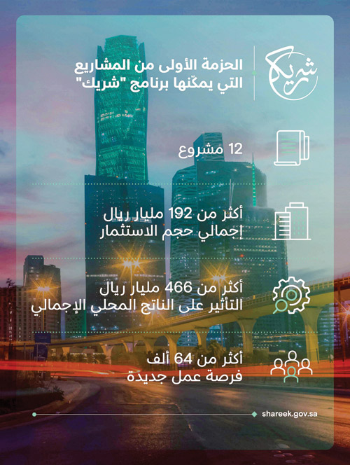 وستحمل الحزمة الأولى من المشاريع المدعومة أثراً اقتصادياً واستراتيجياً يطال جملة من القطاعات الاقتصادية في المملكة بالإضافة إلى توفير 64.451 ألف فرصة عمل جديدة، حيث شملت مراسم التوقيع: الموافقة على تقديم الدعم لخمسة مشاريع خاصة بشركة «أرامكو السعودية» لتسريع وتيرة تنفيذها،والتي من شأنها أن تساهم في خلق أكثر من عشرة آلاف وظيفة: مشروع مشترك لإنشاء مصنع لألواح الحديد، والذي يهدف إلى تحقيق الاكتفاء الذاتي للمملكة على صعيد تلبية الطلب على ألواح الحديد بحلول عام 2030. مشروع خدمات الحوسبة السحابية من شأنه أن يجلب خدمات جوجل السحابية إلى المملكة وترسيخ مكانتها كمركز رائد لتقنيات الحوسبة السحابية المتقدمة مشروع مشترك لتصنيع محركات السفن سوف يساهم في تطوير قطاع صناعات بحرية مستدام وتحقيق المزيد من القيمة في قطاعات تصنيع المعادن والآلات التي تلعب دوراً أساسياً في تنويع جهود التنمية الصناعية. مشروع مشترك لصب وتشكيل المعادن برأس الخير، والذي من شأنه أن يعزز من تكامل سلاسل الإمداد الصناعية بالمملكة. مشروع مجمع أميرال للبتروكيمياويات الذي يسهم في توطين إنتاج مواد كيميائية جديدة بهدف تعزيز ريادة المملكة عالمياً في مجال الصناعات البتروكيماوية. وفي قطاع الطاقة أيضاً ستتلقى شركة «أكوا باور» دعماً لإنشاء أكبر مصنع لإنتاج الهيدروجين الأخضر في العالم، حيث يتم تطويره وفق شراكة مع شركتي «نيوم للهيدروجين الأخضر» و»إير برودكتس قدرة». ويسلط هذا المشروع الضوء على الإمكانات الهائلة للمملكة كدولة رائدة في مجال الطاقة الخضراء، ويدعم جهودها المبذولة لتقليل الانبعاثات الكربونية. ومن جانبها ستحصل شركة التعدين العربية السعودية (معادن) على الدعم من البرنامج لتسريع إنجاز مشروعها «فوسفات 3» في منطقة وعد الشمال، والذي من المنتظر أن يسهم في تعزيز مكانة الشركة كثالث أكبر منتج للأسمدة الفوسفاتية عالمياً بحلول عام 2029، وترسيخ ريادة المملكة العربية السعودية ضمن سلسلة القيمة العالمية لقطاع الزراعة، مما يساعد في دعم الأمن الغذائي العالمي. وفي قطاع البتروكيماويات: حصلت شركة سابك على دعم البرنامج لمشروع صناعة المحفزات بهدف تقليل الاعتماد على الواردات وتعزيز الصادرات من خلال إنشاء أول مركز لصناعة المحفزات في المملكة. ومن خلال مشروع مشترك لشركة المتقدمة للبتروكيماويات، قدم «شريك» الدعم لإنتاج الميثيونين السائل وكريتات الأمونيوم، والذي من شأنه المساهمة في تعزيز الأمن الغذائي بالمملكة ورفع كفاءة الإنتاج الحيواني، كما سيسهم المشروع في توفير 21 ألف فرصة عمل جديدة بالمملكة.وفي قطاع الاتصالات: بدعم من برنامج شريك، تعتزم مجموعة stc تنفيذ مشروع كابلات بحرية في خطوة استراتيجية ستعزز مكانة المملكة كمركز رقمي ووجهة موثوقة لحركة البيانات في منطقة الشرق الأوسط وشمال إفريقيا. كما قدم البرنامج دعمه لمجموعة الاتصالات المتنقلة «زين» لتنفيذ مشروع إنشاء مراكز بيانات رقمية، بهدف المساهمة في تحويل اقتصاد المملكة إلى اقتصاد رقمي رائد عبر تعزيز جاهزيتها وقدرتها على مواكبة أحدث التطورات التي سيشهدها قطاع تقنية المعلومات في المستقبل. ومن ناحية أخرى، في قطاع النقل والخدمات اللوجستية، تعتزم شركة البحري السعودية الرائدة في مجال الخدمات اللوجستية زيادة قدرتها على نقل غاز الأمونيا من خلال تنفيذ مشروع استراتيجي تم دعمه من خلال «شريك». ويهدف المشروع إلى توفير خدمات نقل الأمونيا لأول مرة في المملكة وبالتالي تقليل الاعتماد على الناقلات الأجنبية عبر تعزيز المحتوى المحلي في قطاع الخدمات اللوجستية. يذكر بأن برنامج «شريك» صمّم بهدف المساهمة في تحقيق مستهدفات رؤية المملكة 2030 المتمثلة برفع مساهمة القطاع الخاص في الناتج المحلي الإجمالي للمملكة إلى حدود 65% وزيادة نسبة الصادرات غير النفطية من 16% إلى 50%. كما يستهدف البرنامج زيادة تنمية استثمارات القطاع الخاص لتصل إلى 5 تريليونات ريال بحلول عام 2030.
