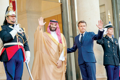 وفي محطته الأوروبية التقى صاحب السمو الملكي الأمير محمد بن سلمان بن عبدالعزيز ولي العهد نائب رئيس مجلس الوزراء، في العاصمة الفرنسية باريس، فخامة الرئيس ايمانويل ماكرون رئيس الجمهورية الفرنسية. وفور وصول سمو ولي العهد قصر الإليزيه، كان في استقباله فخامة الرئيس الفرنسي الذي رحب بسمو الأمير محمد بن سلمان بن عبدالعزيز في فرنسا متمنياً له ومرافقيه طيب الإقامة، فيما عبر سمو ولي العهد عن سعادته بهذه الزيارة. كما كان في استقبال سمو ولي العهد أصحاب المعالي الوزراء في الحكومة الفرنسية وعدد من كبار المسؤولين. فيما صافح فخامة الرئيس الفرنسي أصحاب السمو الأمراء وأصحاب المعالي الوفد الرسمي المرافق لسمو ولي العهد. وقد أقام فخامة الرئيس الفرنسي مأدبة عشاء تكريماً لسمو ولي العهد. وعقد سمو ولي العهد وفخامة الرئيس الفرنسي اجتماعاً موسعاً بحضور وفدي البلدين.