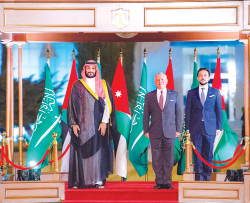 عقد صاحب السمو الملكي الأمير محمد بن سلمان بن عبدالعزيز آل سعود لقاءً مع جلالة الملك عبدالله الثاني بن الحسين ملك المملكة الأردنية الهاشمية، بحضور صاحب السمو الملكي الأمير الحسين بن عبدالله الثاني ولي العهد في المملكة الأردنية الهاشمية، وجلسة مباحثات موسعة بحضور وفدي البلدين وذلك بالعاصمة الأردنية عمان.
