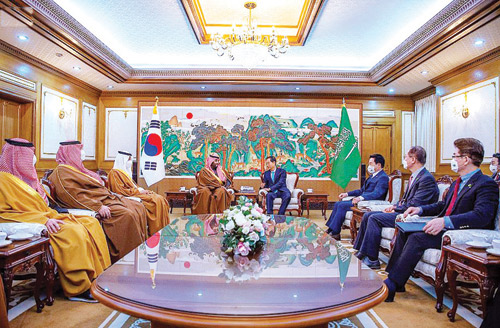 ومن تايلند كانت زيارة سمو ولي العهد إلى كوريا حيث عُقد في العاصمة الكورية سيئول جلسة مباحثات رسمية مع دولة رئيس وزراء جمهورية كوريا السيد هان دوك سو. وجرى خلال المباحثات استعراض علاقات الصداقة بين البلدين، وآفاق التعاون الثنائي وسبل تنميته وتعزيزه في مختلف المجالات.